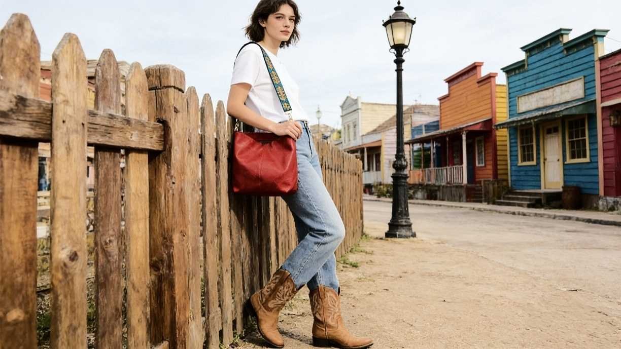 1. Daily Casual Style: Ethnic Hobo Bag + Retro Cowboy Boots